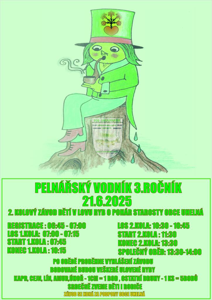 Dne 21. června 2025 se uskuteční 2. kolový závod dětí v lovu ryb o pohár starosty obce Uhelná. Registrace probíhá od 06:45 do 07:00, první kolo začíná v 07:00, s losováním a startem závodu. Po společném obědě v 13:30 se pokračuje v závodě, bodovány budou všechny ulovéné ryby. Srdečně zveme děti i rodiče k účasti na této akci.